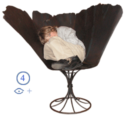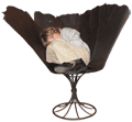 Fauteuil "trône" en forme feuille de Gingko. Son assise en fer forgé lui donne légèreté et souplesse.